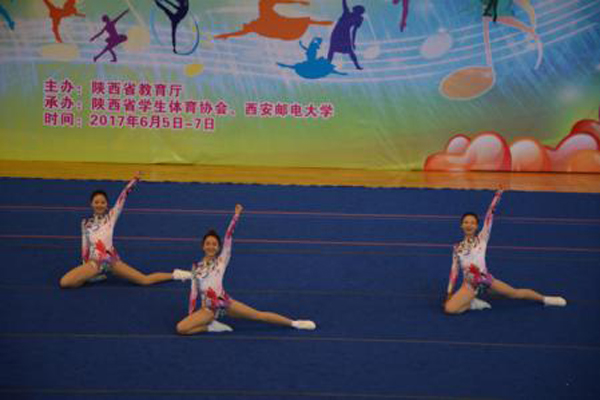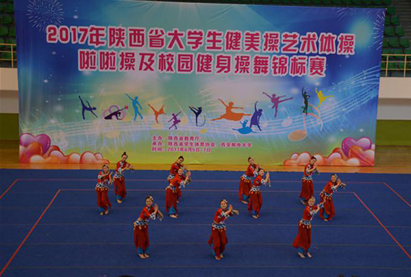 西京网讯:6月7日,由陕西省教育厅学生体育协会主办、西安邮电大学承办的2017年陕西省大学生健美操、艺术体操、啦啦操及校园健身操舞锦标赛在西安邮电大学长安校区体育馆落幕,本次比赛共有来自陕西省43所高校,1000多名运动员参加了本次角逐。