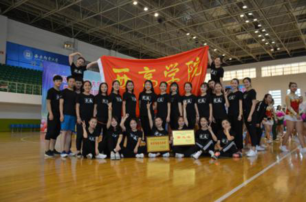 我校27名队员在领队康建老师、教练员尤伟、李岩、任邵华老师的带领下参加了十个项目的比赛,取得了甲组团体总分第三名的优秀成绩及体育道德风尚奖。其中,我校健美操队共获得了男子单人、混合双人、女子三人1队、踏板自编四项冠军。女子五人获亚军;女子三人2队获季军,其余参加的比赛均进入前六名。